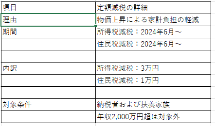納税者本人だけですと、所得税・住民税の合計4万円が減税されるとのことです。